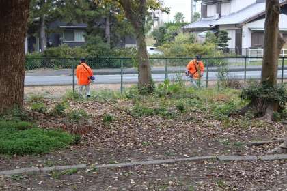 朝8時,一斉に機械音が鳴り響きました。これは,今年3回目の榎戸コミュニティの皆様による除草作業の始まりを告げる音です。
