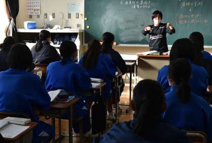 2Bの教室で、保健体育「交通事故の要因と傷害の防止」の授業を受けています。