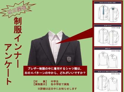 新しい制服(R6.4〜)の中に着るものについて、中学生のみなさんを対象としたアンケートを実施します。(市内統一)