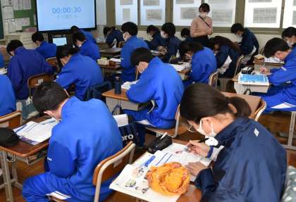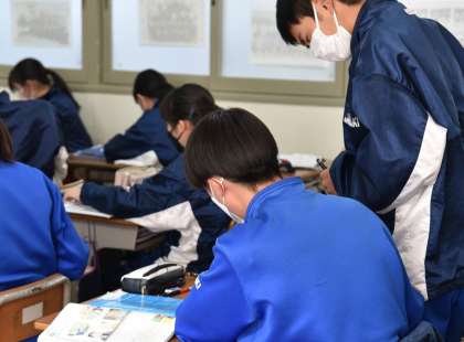 学習プリントの練習問題に取り組むことで、学びを深めています。