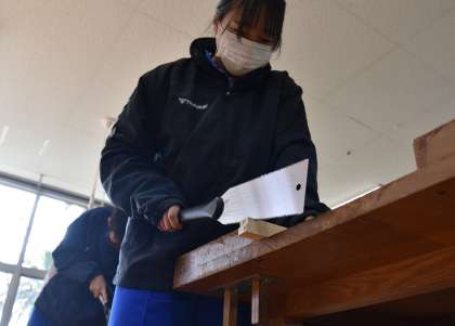 まっすぐに切れるよう慎重に進める生徒が多く見られます。