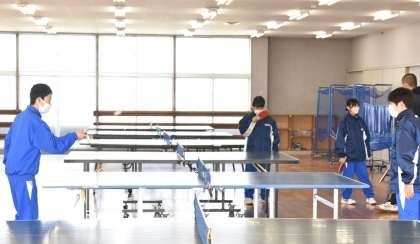 「卓球」の授業で、2人組になってラリーをしています。