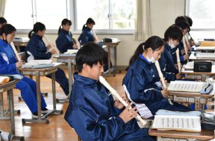 そして、みんなで「限られた時の中で〜」と一斉に吹き始めます。