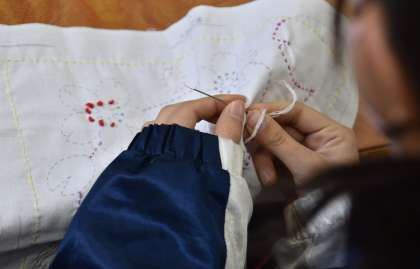 裁縫の「並縫い」の学習の一環として取り組んでいます。