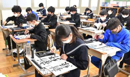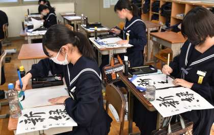 1年生で習った「行書」の学習を思い出しながら、手本を参考に書いていきます。