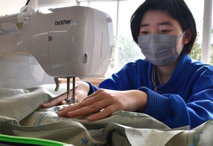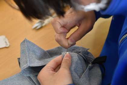 手縫いの部分もあればミシン縫いのところもあり、両者を使い分けながら進めています。