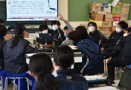 興味津々に注目する生徒もいれば、「爆発する」と言って離れる生徒もいます。