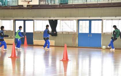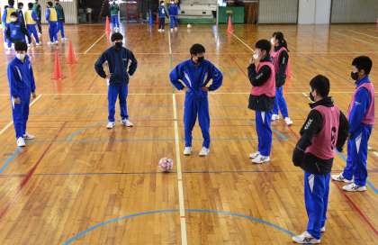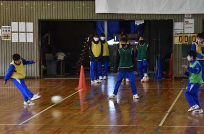 「フットサル」の学習で、対戦形式で試合に臨んでいます。