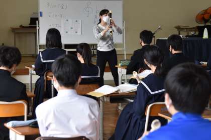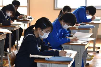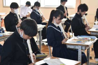 その後、学習プリントに「ふるさと」の指使いを書き込んでいきました。