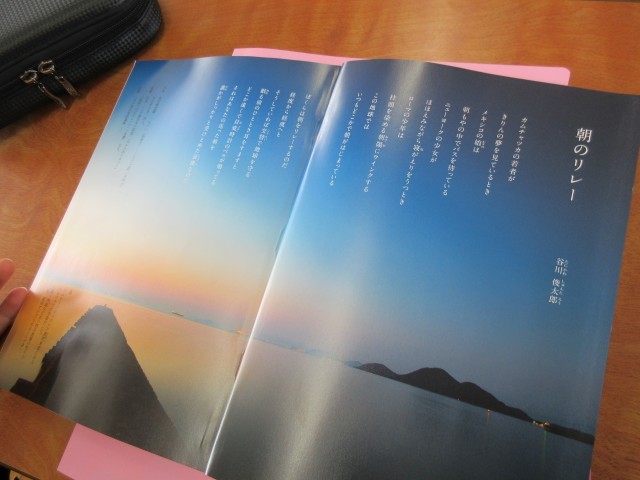 表紙の見開きにある谷川俊太郎「朝のリレー」。