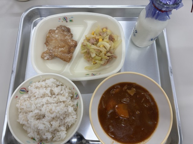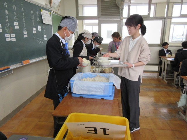 お待ちかねの給食が始まりました。