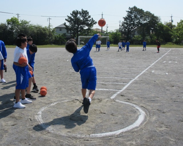 鬼崎中学校は、本年度創立80周年を迎えます。それを記念して航空写真と集合写真の撮影をしました。セスナ機に向かって、赤と青のエプロンを掲げて撮影です。