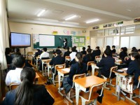 第2回学校保健委員会を2,3年生は体育館で、1年生は教室で配信を見る形で行いました。