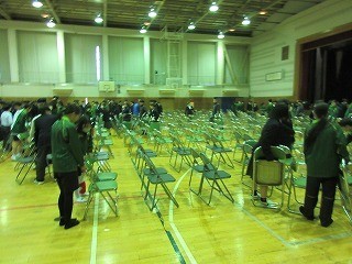 明日、1月29日(木)の入学説明会に向けて、イス並べのボランティアを募集したところ、想像した以上に生徒が集まり、イス並べをしてくれました。たくさんの生徒が手伝ってくれたおかげで、600脚以上あったイスをあっという間に並べることができました。ありがとうございました。