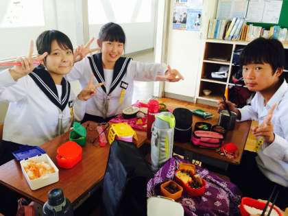 体育祭が延期となり,土曜日ですが授業を行いました。昼は,いつもの給食でなく,お弁当!ひとりひとり個性あふれるお弁当を持ってきました。中には,自分で作ったという生徒も!えらい!いつもと違った雰囲気のお昼のひとときでした。(一)