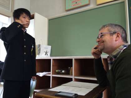 11月9日 3年英語 ケビン先生との英会話 公開日 2015/11/09 更新日 2015/11/09 お知らせ(生徒会活動、委員会、部活動など) 3年生英語の授業では,ALTのケビン先生と一緒に,電話での英語の受け答えを練習していました。集合時刻と場所を英語で伝え,相手に伝わるのはとてもうれしいようです。これで,外国人の方に英語で電話をすることができるようになりましたね!(一) いいね(0)
