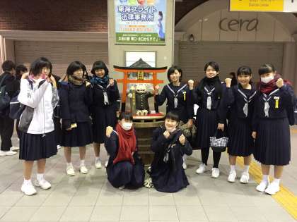 ついに,私立高校・専修学校推薦入試の日。緊張した様子で常滑駅に集まる生徒たち。自分のやってきたことを信じて,大丈夫。みんな元気に出かけて行きました。出発前に,みんなで気合いを入れて写真撮影。がんばれ!受験生!(一)