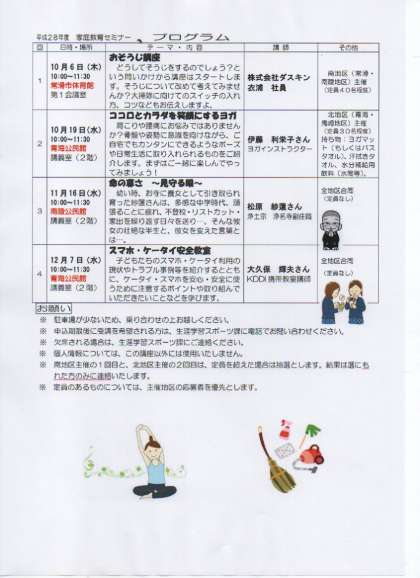 家庭教育セミナーのプログラムをお知らせします。常滑中学校の生徒には配布すみです。ふるってご参加ください。