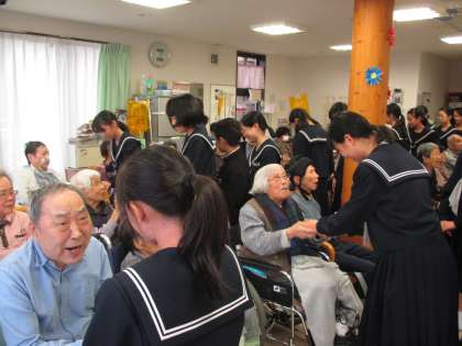 緊張していた部員たちも、最後には、笑顔でおじいちゃん、おばあちゃんたちと握手してきました。