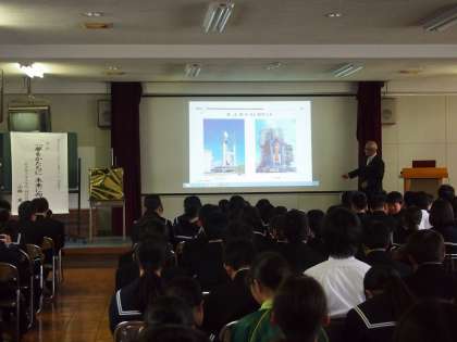 わくわく理科教室(1年) 公開日 2016/12/02 更新日 2016/12/02 校長より 石田退三記念財団のご支援により、1年生は6限に「わくわく理科教室」を行いました。これまでロケットの研究をされてきた小林先生より、ロケット開発について沢山お話をいただきました。小林先生は中学1年生の自由研究が技術者を目指すきっかけであったそうです。みなさんも夢を持ち続け、夢を現実のものにしよう! いいね(0)