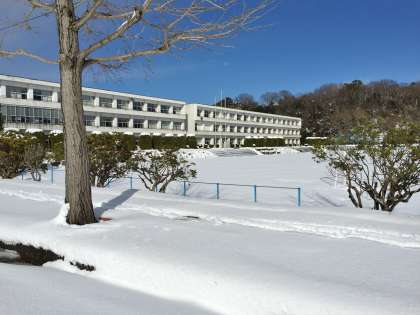 真っ白な雪の中で、常中の校舎が輝いていました。伝統ある校舎を大切に使い、生徒の皆さんも輝いてください!