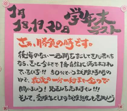 1月18日 3年生最後の定期テスト その2