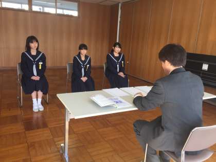 3年生の面接練習が始りました。今は私立高校等を希望し、面接試験がある者を対象に練習しています。公立高校は全て面接試験があります。事前の準備をしっかりとして、礼儀正しく、はきはきと自信をもって答えられるように練習しましょう。