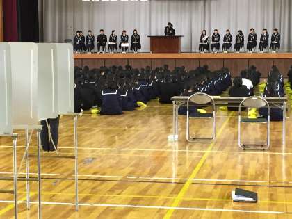 3月9日 生徒会選挙 公開日 2017/03/09 更新日 2017/03/09 校長より 前期生徒会選挙が行われました。立候補者が、生徒会への思いを語りました。全校のみんなで生徒会活動を盛り上げましょう。 いいね(0)