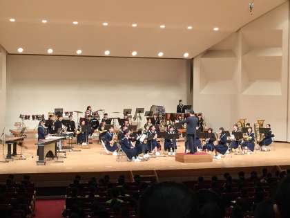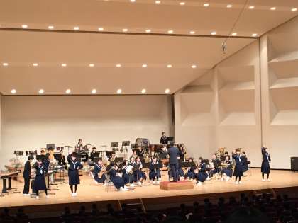 雁宿ホールで知多吹奏楽祭が行われました。吹奏楽部は、「君の名は」コレクションと恋をダンスを交え楽しく演奏し、皆さんから沢山の拍手をいただきました。