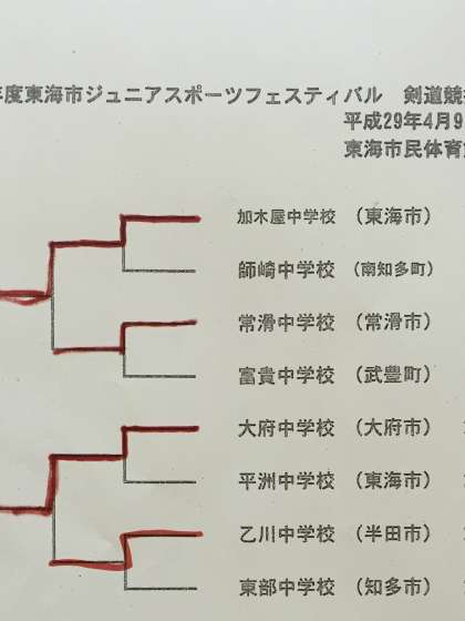 剣道部 試合結果 公開日 2017/04/08 更新日 2017/04/08 校長より 東海市ジュニアスポーツフェスティバルが、始まりました。 今日は、剣道部が行われました。 明日は、卓球部です。 男子 1回戦 負 対 加木屋中 女子 1回戦 勝 対富貴中 2回戦 負 対加木屋中 いいね(0)