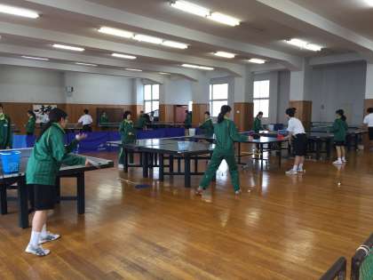 卓球部は、いつも沢山の卓球台を使って能率よく練習しています。