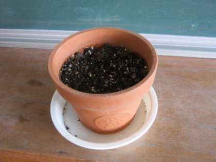 今日は、委員会の時間に植木鉢に土を入れ、10粒ほどの種をまきました。