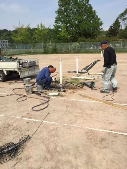 5月15日 テニスコート工事 公開日 2017/05/15 更新日 2017/05/15 校長より テニスコートの支柱が、長年の使用で傾くなどの支障が出てきました。本日その工事がありました。 テニス部のみなさん、明日から新しい支柱のコートで練習ができます。一生懸命練習に励んでください。 いいね(0)