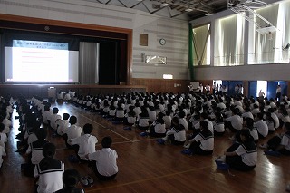 朝会時に、新聞・情報委員会によるIモラル講習会が行われました。