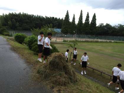 8月26日 除草作業 公開日 2017/08/26 更新日 2017/08/26 校長より 雨天のため、親子除草作業はできませんでしたが、雨が上がった9時より全校生徒で除草作業を行いました。例年のようにはいきませんでしたが、校内、常中坂、北坂を綺麗にしました。 いいね(0)