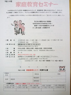 9月1日の始業式の日に「家庭教育セミナー」の受講者募集のチラシを配布します。