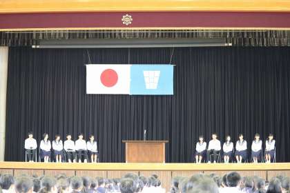 今日で中間テストが終わり、生徒たちもほっとしたと思います。テスト後、生徒会交代式が行われました。