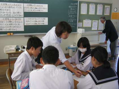 今日は学校外の人が授業を見に来られました。日頃ないシチュエーションでの授業で、生徒も先生も緊張しているようですね。