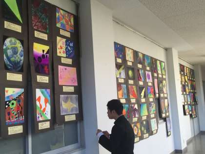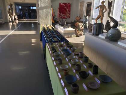 ロクロ作品は、2階西渡りです。 美術作品は、南館1階廊下です。