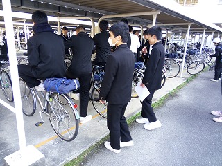 11月27日 自転車点検 公開日 2017/11/27 更新日 2017/11/27 お知らせ(生徒会活動、委員会、部活動など) 期末テストの1日目の帰りのST後、自転車点検を行いました。 ブレーキ、サドルの高さ、ライトなど、生活交通委員が中心となって、自転車に不備がないかを点検していきました。 ちょっとした故障が大きな事故につながるかもしれません。普段から自転車に不備がないかを自分で点検し、事故を起こさないように気をつけてほしいです。 (い) いいね(0)