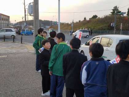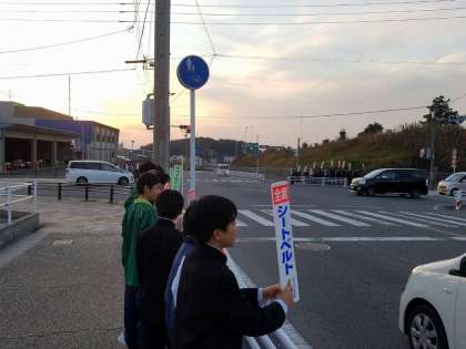 12月7日、サイン板作戦 公開日 2017/12/09 更新日 2017/12/09 お知らせ(生徒会活動、委員会、部活動など) 先日、サイン板作戦を行いました。この作戦は交通安全の啓発運動として、常滑警察署と協力して、行っているものです。今回は、卓球部の生徒が参加してくれました。寒い中の作戦になりましたが、みんな一生懸命頑張ってくれました。(か) いいね(0)
