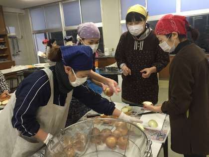 PTAの研修委員が中心となり評議員の方々が、明日の炊出し訓練の準備をしました。