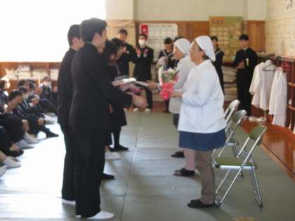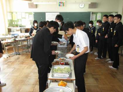 卒業まであと1週間になりました。今日の4時間目は給食感謝の会が行われました。そして、その後はお待ちかねのお祝い給食です。色々な食べ物がありますね。日頃慣れ親しんだ給食を食べられるのもあとわずか。一食一食を感謝して食べたいものです(た)