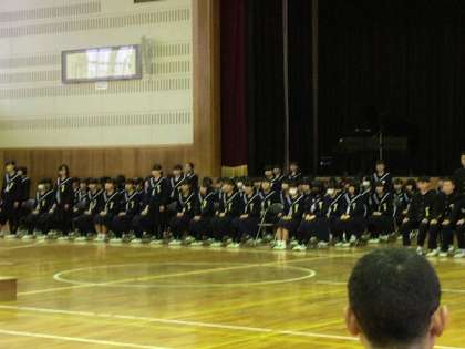 今日は最後の全体練習でした。全校生徒が体育館に集まる中、3年生の皆勤賞の表彰も行われ、この常滑中に、今年度の1年間、そして中学生活3年間、休まずに登校できた人たちを称えました。