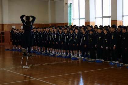 この1年の締めくくりを6時間目の学年集会の最後に歌を歌いました。