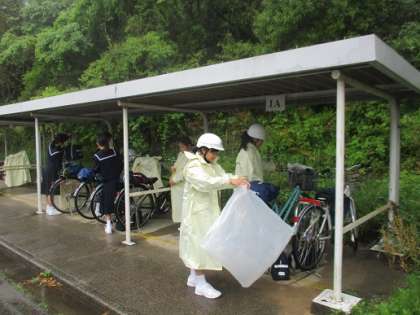 1年生が初めてカッパを着て登校しました。(昨日の帰りかも)