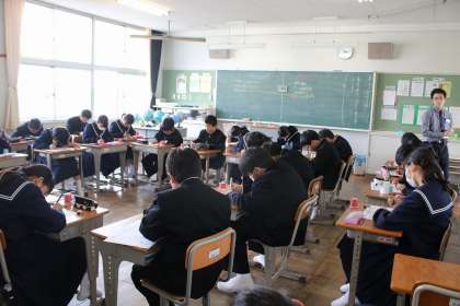 集中した雰囲気で、学んだことをどう実生活に活かすかをワークシートに記入しています。