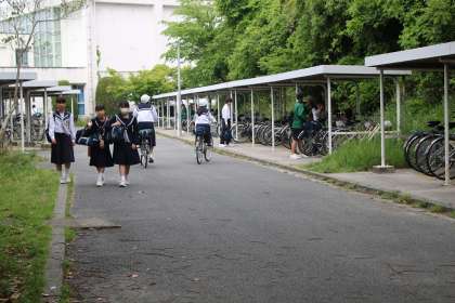 連休前の金曜日。1週間の最後で疲れているのかなぁと思いきや、今日もとっても元気に「おはようございます!」と挨拶してくれました。生徒達は毎日元気に笑顔で登校しています。あと1日がんばろう!(む)