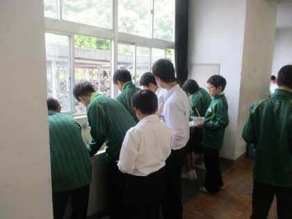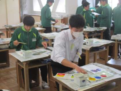 制服に絵具がつかないように、ジャージを着ます。もし制服が汚れた人は、早めに洗濯をしてくださいね。
