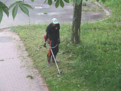 朝、「ウィ〜ン」という草刈りの音が職員室に聞こえてきました。